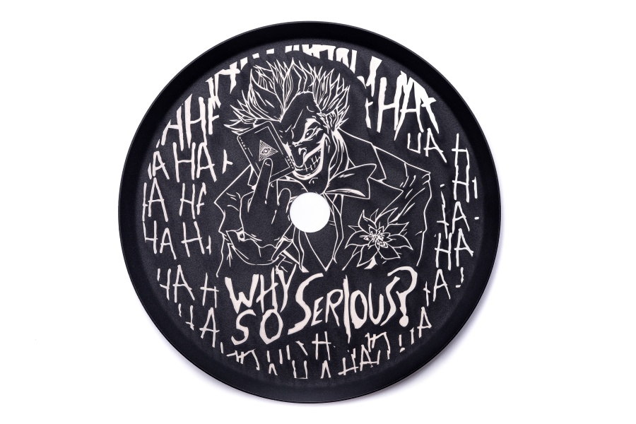 Модель Икс от Альфа Хука в дизайне Джокер — это настоящая визуальная провокация, где главенствуют яркие оттенки сложного фиолетового-зеленого цвета с вкраплениями серебра, а на блюдце выгравирован образ знаменитого персонажа Джокера с фразой «Why So Serious?».