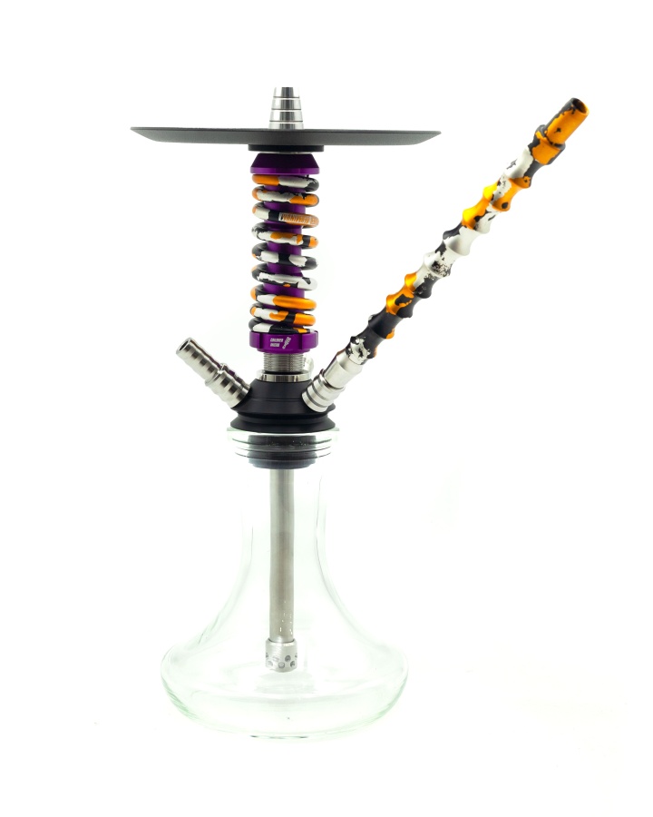 Кальян Mamay Customs micro coilovers (Мамай Кастомс микро коиловерс) — очень интересный дизайнерский кальян от Вовы Мамаева с интегрированной в шахту пружиной автоамортизатора. Кальян выполнен из нержавеющей стали, покрыт очень стойким покрытием, а также имеет мундштук в том же стиле, и подставку для мундштука. Комплектация: — Шахта — Блюдце — Мундштук Длина шахты — 37 см Диаметр — 12 мм